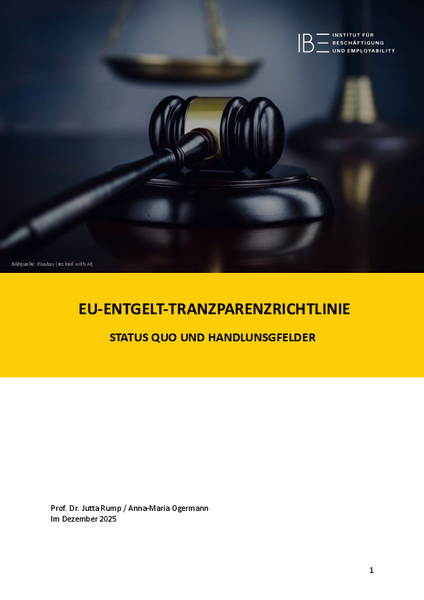 Die vorliegende Studie untersucht, wie Unternehmen in Deutschland auf die neuen Anforderungen der EU-Entgelttransparenzrichtlinie (EU 2023/970) vorbereitet sind, welche Herausforderungen sie erwarten und welche Chancen sie in mehr Entgelttransparenz sehen. Die Ergebnisse bieten nicht nur eine Standortbestimmung vor dem Inkrafttreten der Richtlinie, sondern auch ein tieferes Verständnis dafür, welche Faktoren einen erfolgreichen Transformationsprozess begünstigen oder erschweren.